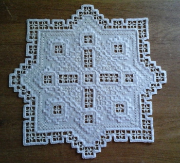 Недавно прошел СП по салфеточке "MADRE LORA"в блоге hardanger-diary где и я решила попробовать сделать вот такую красавицу.Салфеточка моя вышла 26*26см и такая она ажурненькая и милая.Ну сам себя не похвалишь...
